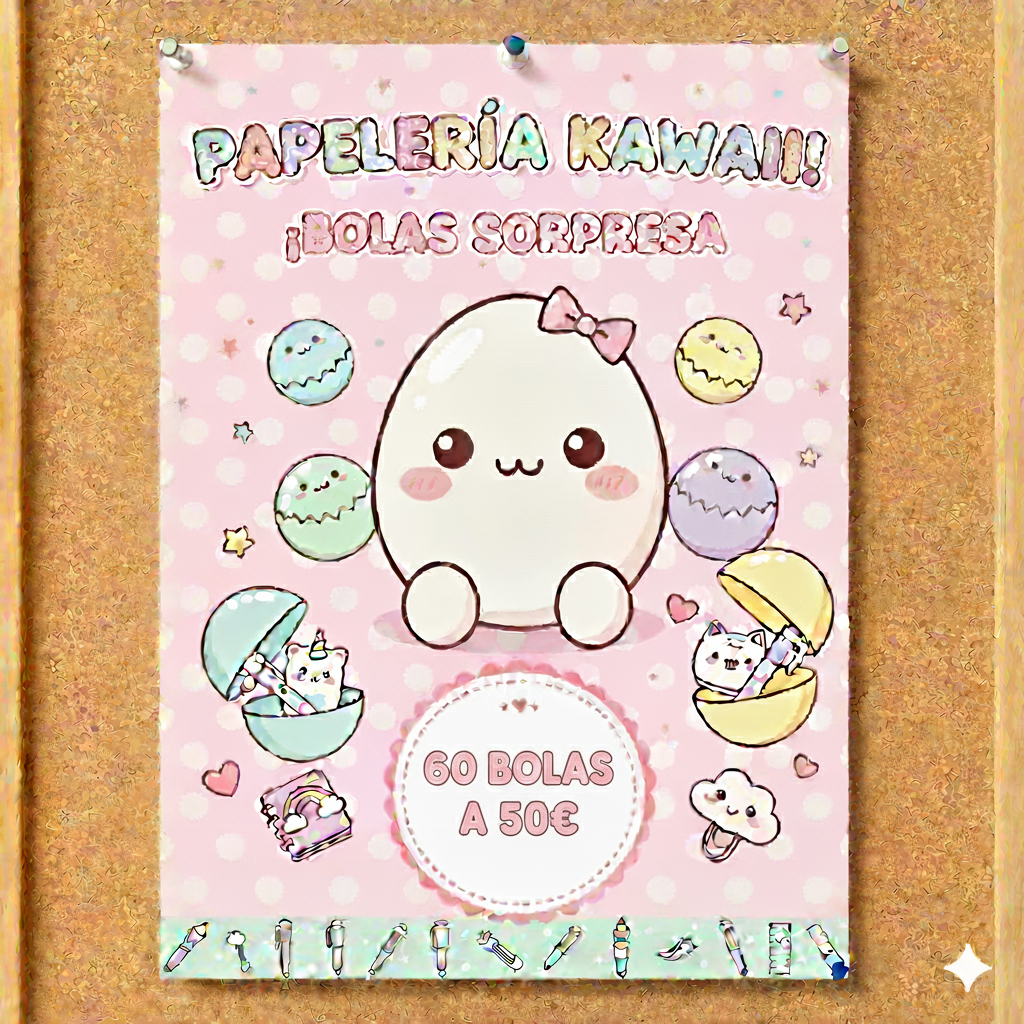 ¡Descubre la magia en cada sorpresa! Tenemos 60 bolas sorpresa de papelería que te encantarán. Dentro de cada una, encontrarás adorables artículos de Sanrio (Hello Kitty, My Melody, Kuromi...), del divertido Stitch. Y mucho más!¡Cada bola es una aventura! Perfecto para coleccionar, regalar o simplemente darte un capricho. ¿Te atreves a descubrir lo que hay dentro?